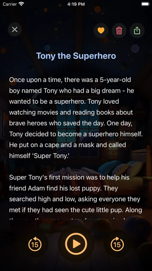 The personalized stories can be transformed into audiobooks. Once a story is selected, you can download the audio file and play it before bedtime. This feature allows children to listen to their favorite stories anytime, anywhere. The stories can sync automatically and effortlessly between devices using iCloud.