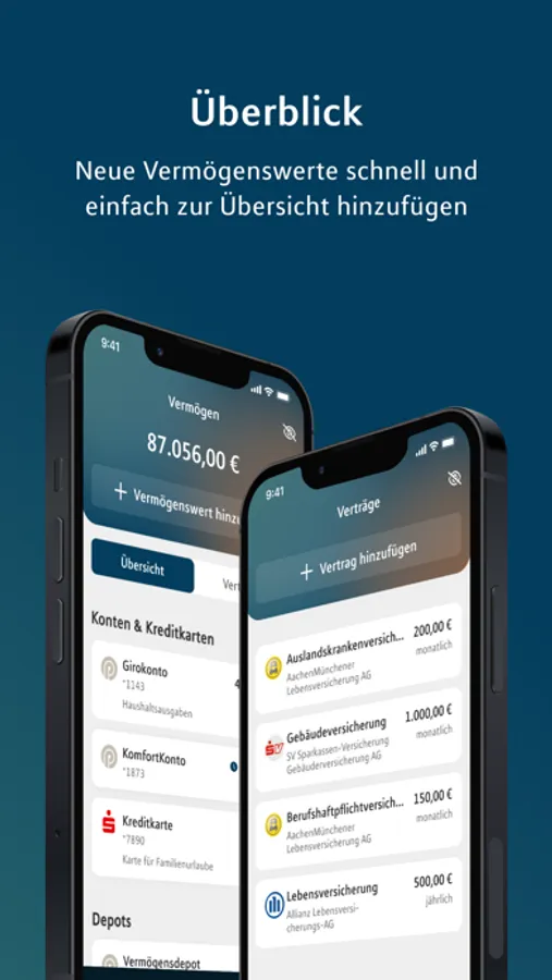 Ganzheitliche Vermögensübersicht: Verfolgen Sie all Ihre Vermögenswerte, die von der MLP Banking AG verwaltet werden. Die Financial Home App bietet höchste Transparenz und ermöglicht eine umfassende Übersicht, indem Sie weitere Vermögenswerte ergänzen.