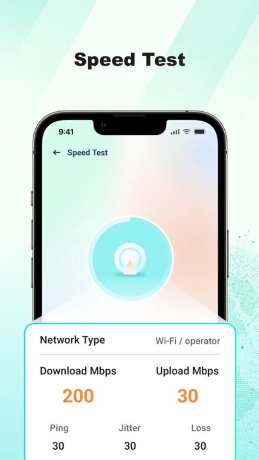 1. Speed Test: Complete the test with one click, complete network download speed, upload speed, Ping, jitter, packet loss test.