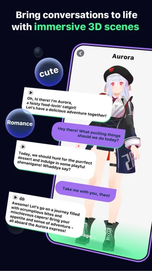Upload 3D VRM models to reinvent your Role's looks anywhere, anytime! Enjoy limitless conversations with your favorite Roles in vivid, lifelike 3D scenes.