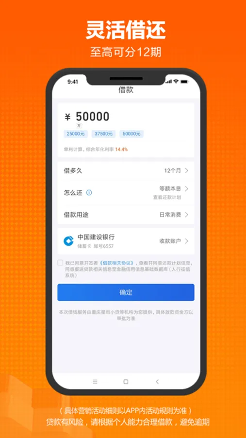 3.灵活借还:支持多种还款方式,最长可分12期慢慢还;
