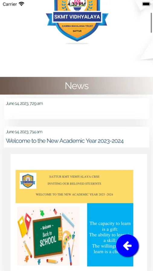 SKMT Vidhyalaya app is based on Nirals EduNiv platform. This app helps parents gather information about their ward at the school. They will be able to receive daily homeworks, school news, examination report cards and any personal messages they are sent from the school. Parents also can send notes to the school using the contact module. School academic calendar can be viewed through the Calendar option to keep informed about the upcoming holidays, events and examinations.
