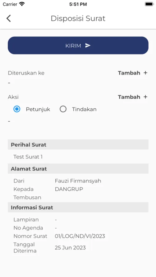 Aplikasi surat digital yang digunakan untuk mempermudah pembuatan dan pengirimannya secara realtime. Pengguna dapat dengan mudah mendelegasikan penerimaan surat, pembuatan surat dan tracking sampai mana surat tersebut tersampaikan