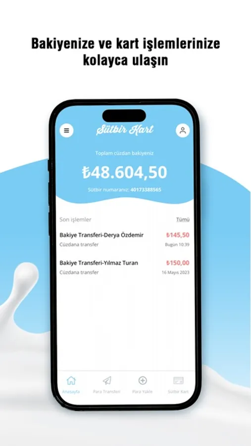 Saniyeler içerisinde Sütbir cüzdan hesabınızı yaratıp, para yükleyebilir ve para transfer edebilirsiniz.