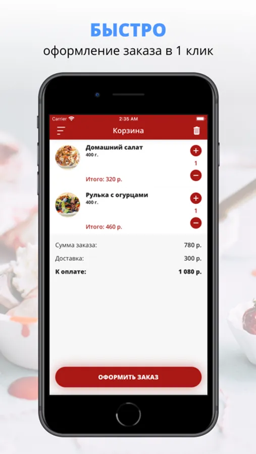 Скачивайте наше приложение, оформляйте заказ и наслаждайтесь любимой едой, где бы Вы ни были! Приятного аппетита!