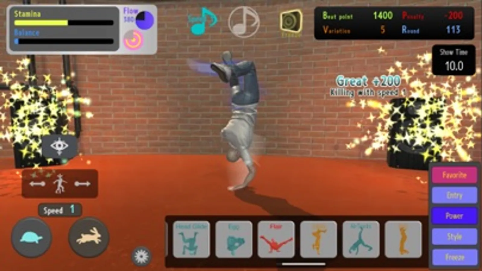 The developer of this application has over 10 years of experience in breakdancing, and has longed for a game that would allow anyone to experience the joy of breakdancing in a simulated way,