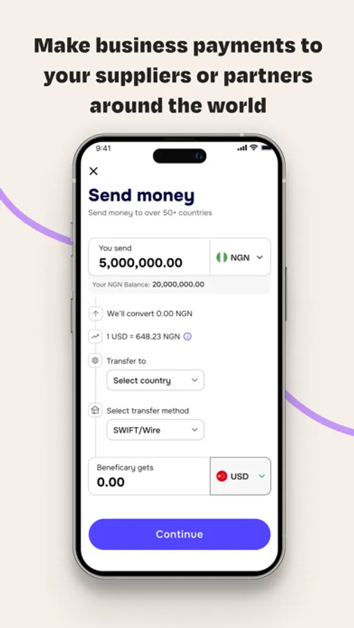 Pay your suppliers or partners around the world. Send money to China, Nigeria, Great Britain, United Arab Emirates, USA, Singapore, and beyond, at unbeatable rates.