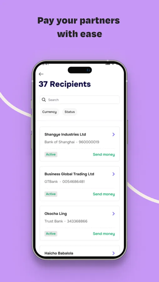 Receive money from partners and vendors. Open multi-currency accounts in NGN, (Coming soon USD, GBP, CAD) to receive money from around the world.