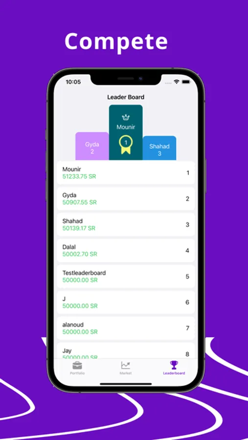 Users leaderboard: Users can compete with other traders in the app through leaderboards, which show the top-performing portfolios, Users can track their progress and strive to improve their ranking.