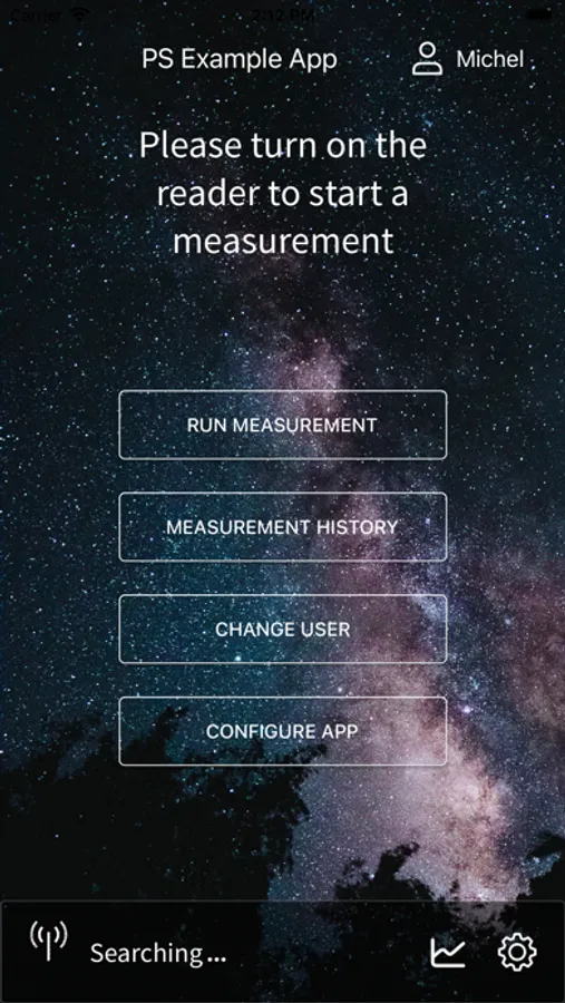 The PSExampleApp is a simple open-source application that guides a user to do a measurement with a PalmSens device to measure concentrations in a liquid sample. The app can be re-configured without code for use with (bio)sensors measuring a specific analyte using a linear calibration curve.