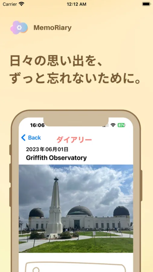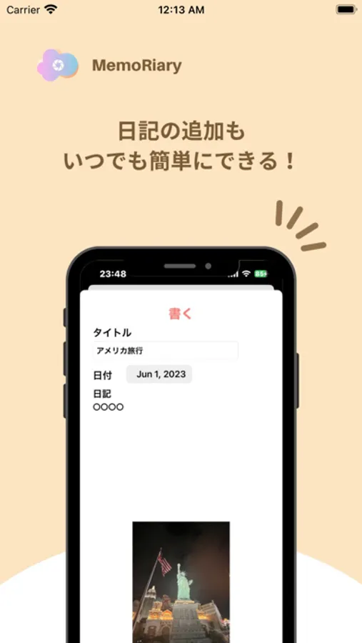MemoRiaryでは、日々の楽しい思い出や頑張ったことを写真と共に記録できます。