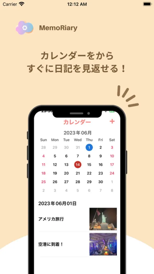 記録した日記は、カレンダー画面から日付をタップして簡単に閲覧できます。