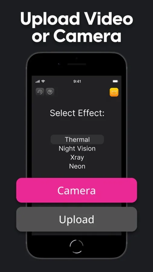 Diverse Effects: Unleash the power of visual effects on your footage. Select from our unique range of effects - thermal, night vision, x-ray, and psychedelic - each meticulously designed to give your videos a distinctive appeal.