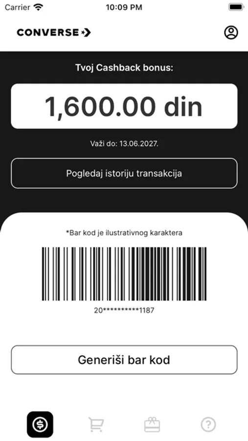 Loyalty and gift app for Converse Srbija loyalty customers.