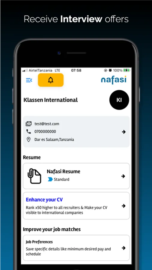 Register and provide a few details about yourself, your job preferences, and your skills. In a matter of minutes, Nafasi will send your professionally crafted resume directly to top recruiters and employers with shortlisted jobs matching your profile.