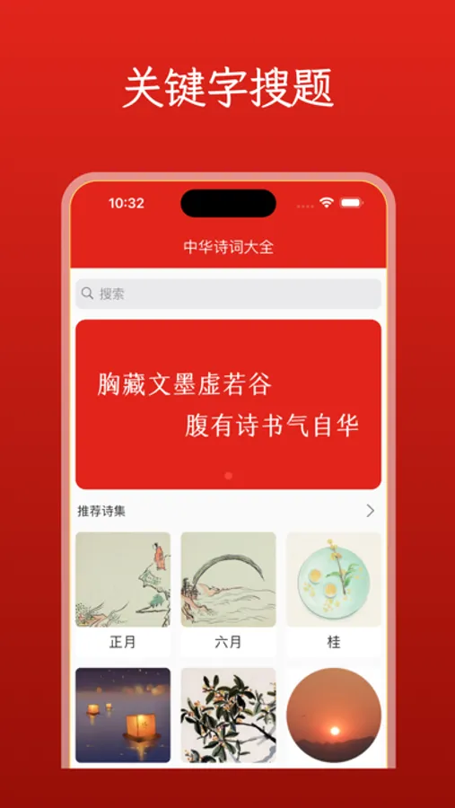 《中华诗词大全》该应用具有丰富的内容,精致的界面,强大的功能和体验,不仅能满足用户对中国传统文化的展望和探求,也是一款值得您收藏和长期使用的应用。中华五千年的文化底蕴在此汇聚,诗词美学的至高体现尽收眼底,这是一场视觉与心灵的双重盛宴,一处文化人必去的诗词天堂。