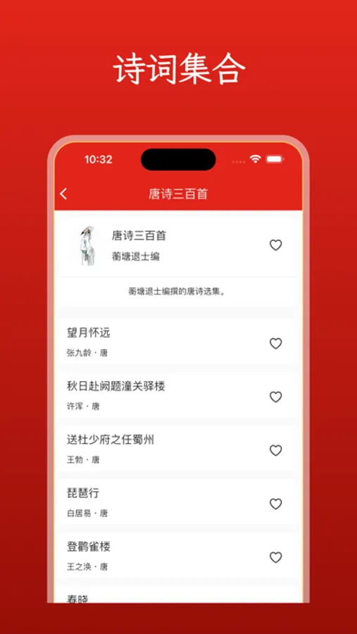 在这个应用中,您可以随时随地欣赏到中国几千年来的优秀诗词佳作。无论您是文学爱好者,还是想了解中国古典文化的普通用户,《中华诗词大全》都能带给您无穷的阅读乐趣。应用提供诗词、诗人、诗集搜索浏览、诗词挑战等功能,让您可以根据个人兴趣快速找到想读的作品,更能挑战练习,提升您的诗词功底。