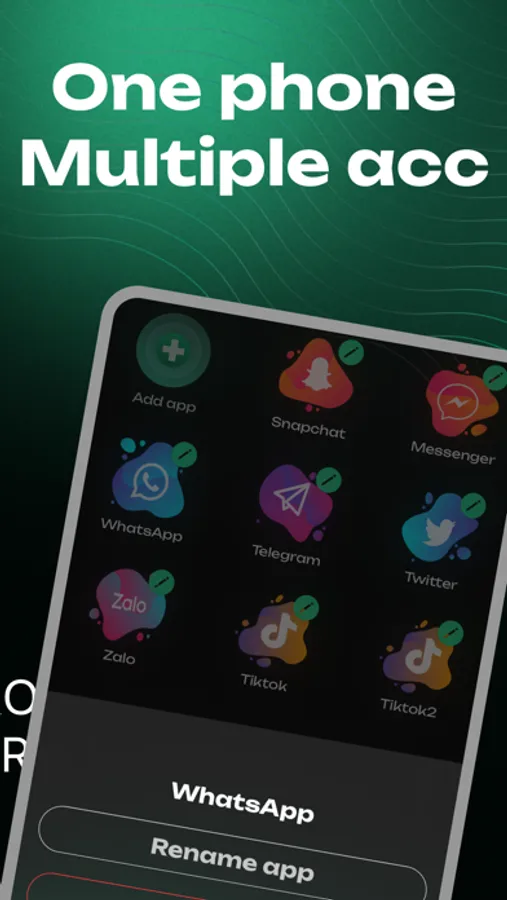 Dual Space is designed for users who log in to multiple accounts of the same app on the same device. App is a useful tool to manage your work and life on the same phone, such as Whatsapp, Instagram, Facebook, Twitter, Pinterest, and Messenger,...