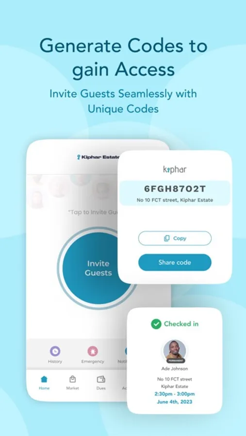 Kiphar boasts of a user-friendly interface, designed with simplicity and functionality in mind. Residents can effortlessly navigate through the app, generating codes, managing visitors, accessing emergency features with ease etc. The intuitive design minimizes the learning curve, making it accessible to users of all ages and technical backgrounds.