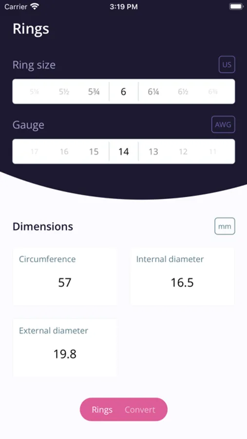 Easily calculate the amount of wire you need to make a ring, and switch between different units used in jewelry making.