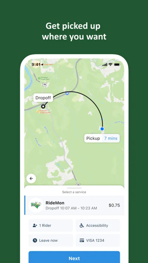 Passengers can request rides live-time without advance reservations and can ride within the RideMon service area or be dropped off at one of three designated connection points to connect with main line bus routes. The three main travel destinations are Hornbeck Road Walmart, Mountaineer Mall and Sabraton Goodwill.