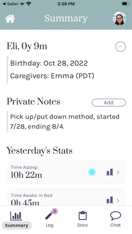 - Dedicated feed and sleep tracking (naps and bedtime) for parents to share progress with consultants