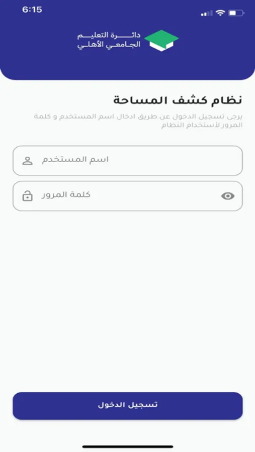 نظام كشف المساحة الداعم للجامعات الاهلية يسهل عملية أجراء مسح شامل للمساحات بما فيها من مباني وغرف عن طريق ملئ استمارات مفصلة تحتوي على معلومات البناية و توثيقها بصور حديثة.