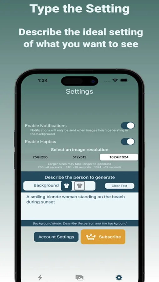 When you generate with our Background mode, the outfit stays the same while the rest changes to whatever place and person you want! With our Outfit mode, the background and person stay the same while the outfit changes to whatever you want!