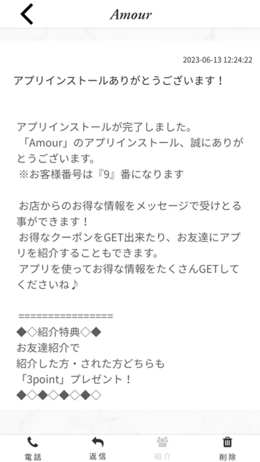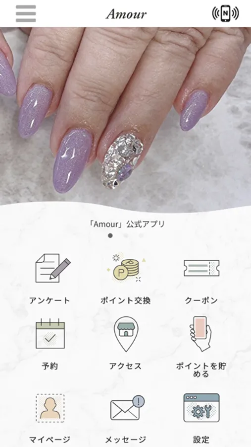 このアプリでは、Amourの最新情報の受け取りや便利な機能を使う事ができます。