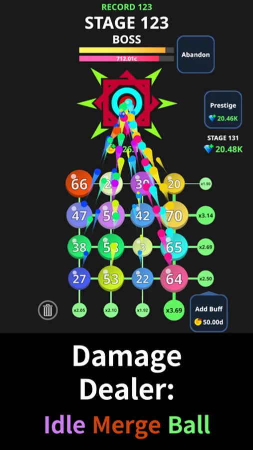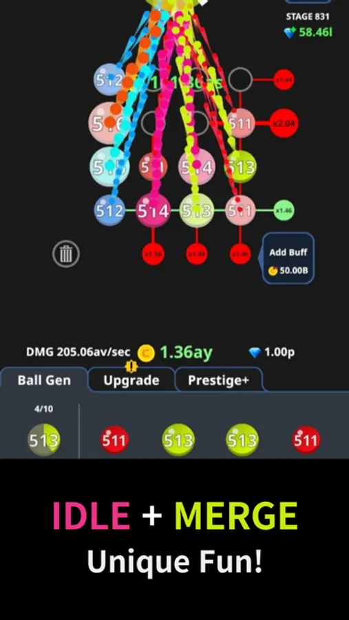 "Damage Dealer: Idle Merge Ball" is a game that requires participation and selective thinking beyond simply being idle. Combine balls to create more powerful damage, and strengthen tiles to defeat monsters. You can smoothly break through stages by utilizing various elements within the game, such as watching advertisements to get additional rewards.