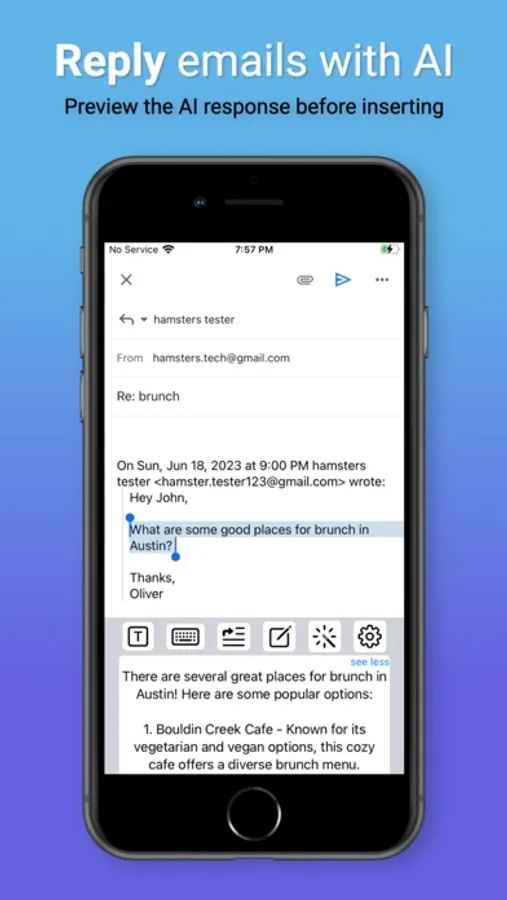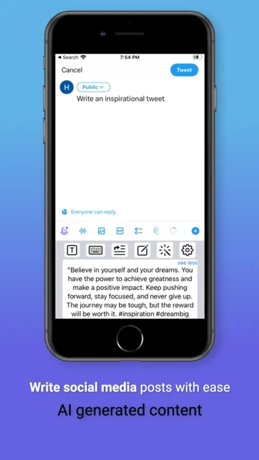 Write anything with the help of AI chatbot in the keyboard. Whether it is writing social media posts, emails , texts or anything else, SmartBoard can do it for you.