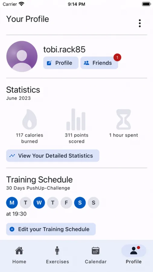 Durch die optionale Registrierung eines Kontos haben Sie Zugriff auf weitere Funktionen, einschließlich der Möglichkeit, Freunde hinzuzufügen und deren Trainingsfortschritt in Ihrem Feed zu sehen. Mithilfe detaillierter Statistiken und eines integrierten Kalenders können Sie auch Ihren eigenen Fortschritt verfolgen.