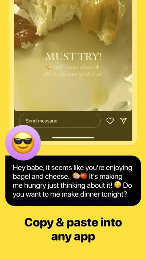 Ever wanted a witty sidekick who could effortlessly flirt with the ladies? Look no further! Chatty is your charming wingman, generating hilarious and flirtatious replies that are sure to make an impression. Whether it's a picture of your crush or a random beauty from the internet, Chatty's witty banter will leave you and your friends in splits while adding a touch of playfulness to your conversations.