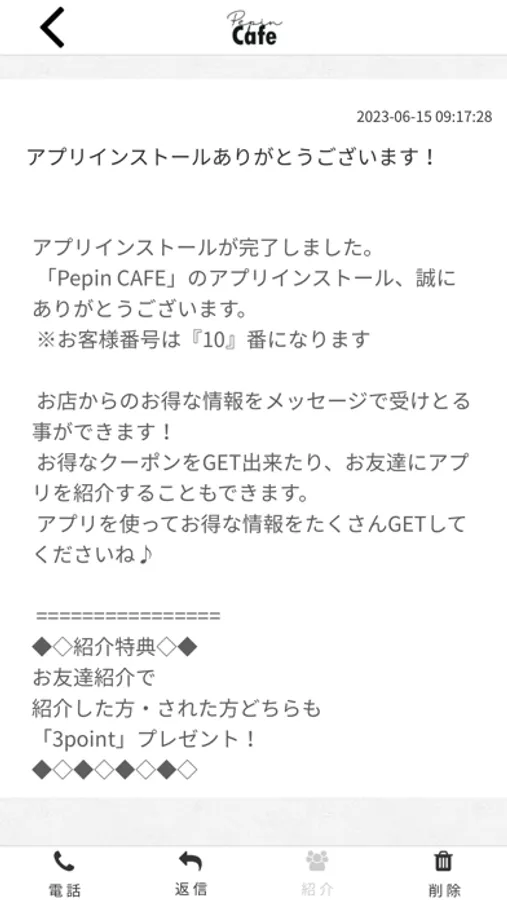 Pepin CAFEのアプリをSNSを通じてお友達に紹介する事ができます。