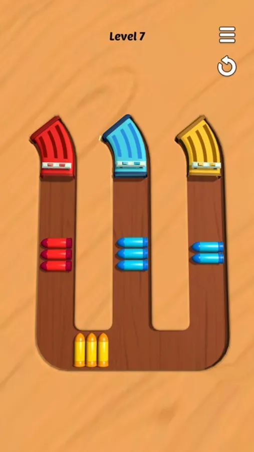 "Sort Bullets" features a diverse range of levels, each with its own unique layout and challenge. As you advance, you'll encounter increasingly complex patterns and obstacles that will put your skills to the test. Tap the bullet first, then tap the magazine of the same color as the bullet to destroy the bullets!
