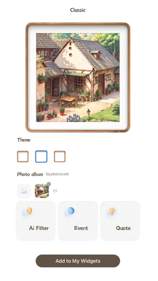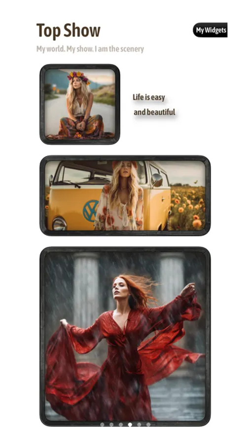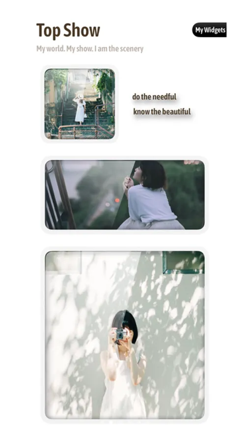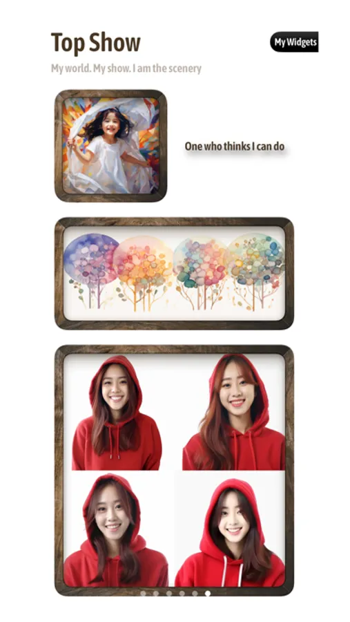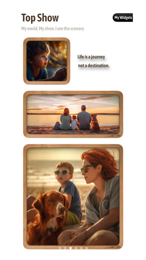 Top Show (Widget) is a beautiful and textured "realistic photo frame" widget, with built-in smart image processing, event reminders, and daily quotes.