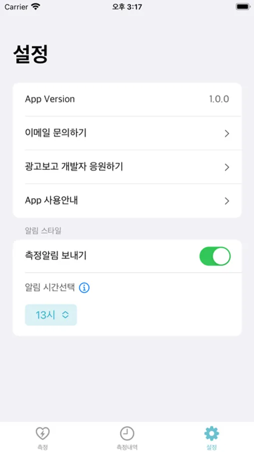 또한 매일 같은시간에 측정하는것을 잊지 않도록 알림설정 도 할수있습니다~