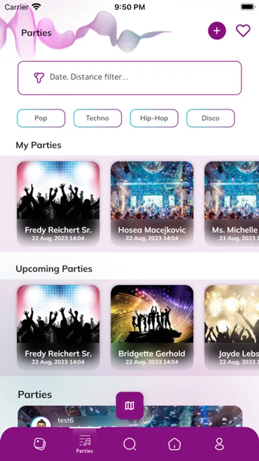 Außerdem siehst du, an welchen Partys deine Freunde teilnehmen.