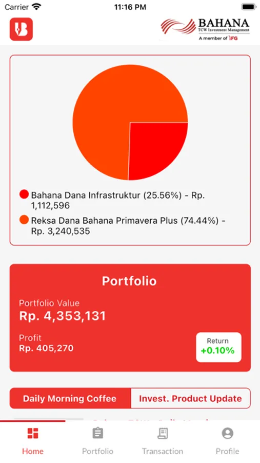 Bahana Signature is a comprehensive, easy to use application by Bahana TCW that helps investors to review their portfolio performance & get news updates related to macro economics. Here you can make approval based on recommendations from Relationship Manager (RM).