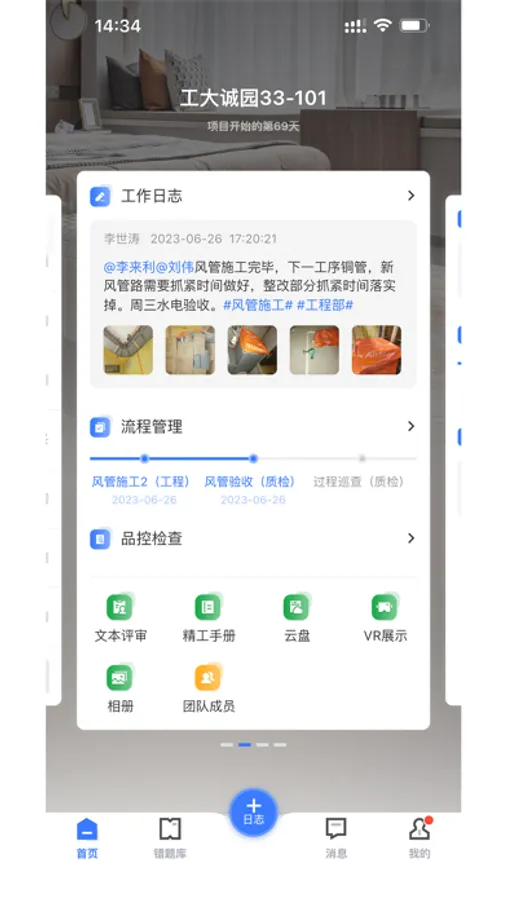 【工作日志】,现场施工记录,所有成员共享,离线环境也可以操作,一键导出成文档