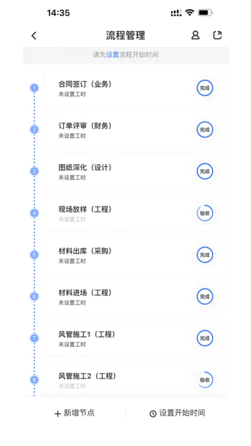 【流程管理】,工程项目不同时间节点的规范化验收,@对应负责人,对节点进行闭环