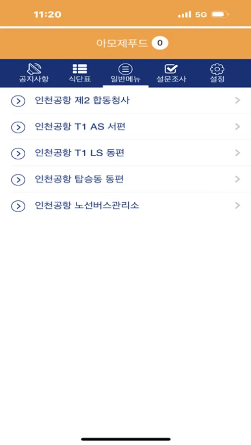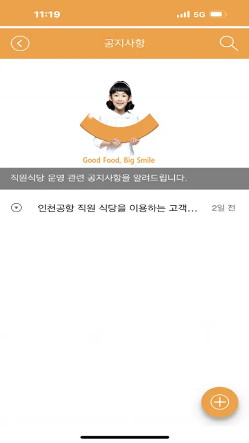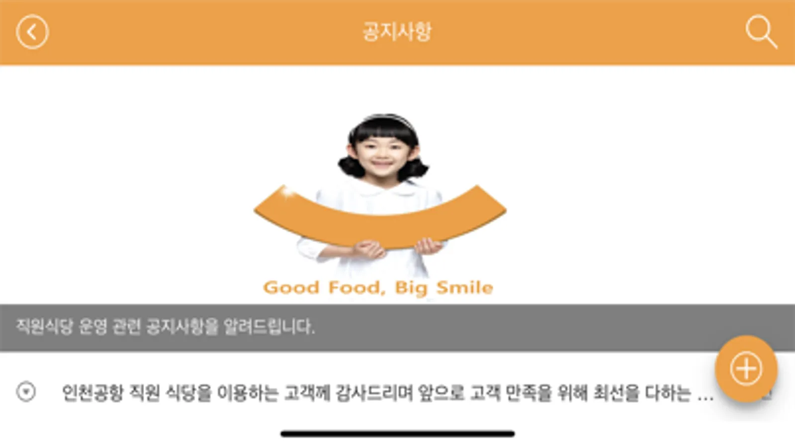 .공지사항: 인천공항 직원식 이용고객을 위한 공지내용 표시