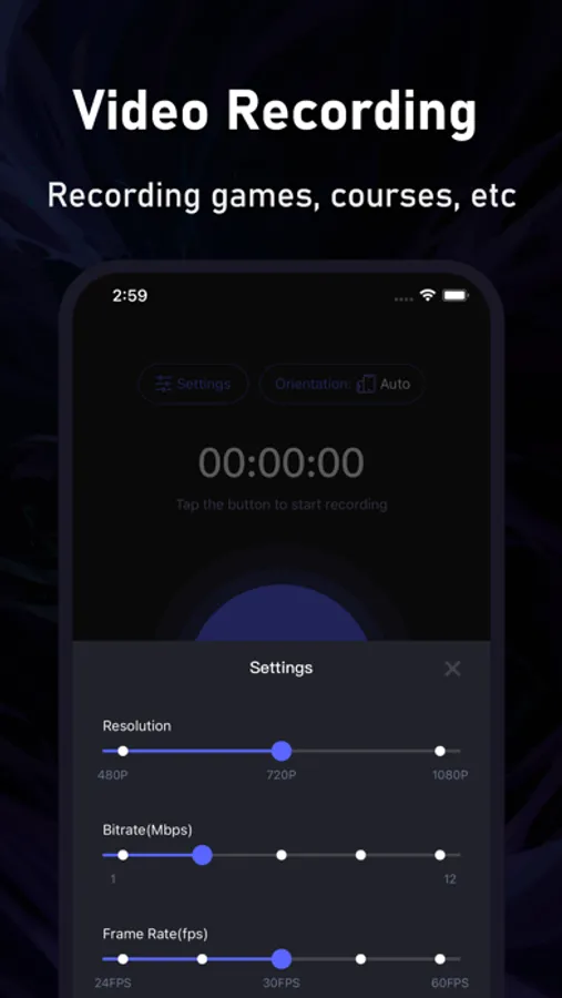 Screen recording supports multiple resolution/bit rate/frame rate parameter settings