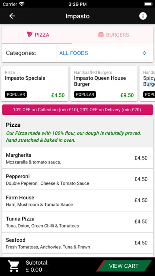 The menu, though simple, is quality focused as we are passionate about good food. Our 100% traceable British Beef burgers are hand pressed daily, never frozen. Our Pizza made with 100% flour, our dough is naturally proved, hand stretched and baked in oven. We use only the freshest and finest tasting produce, which we are determined to ensure is ethically sourced.