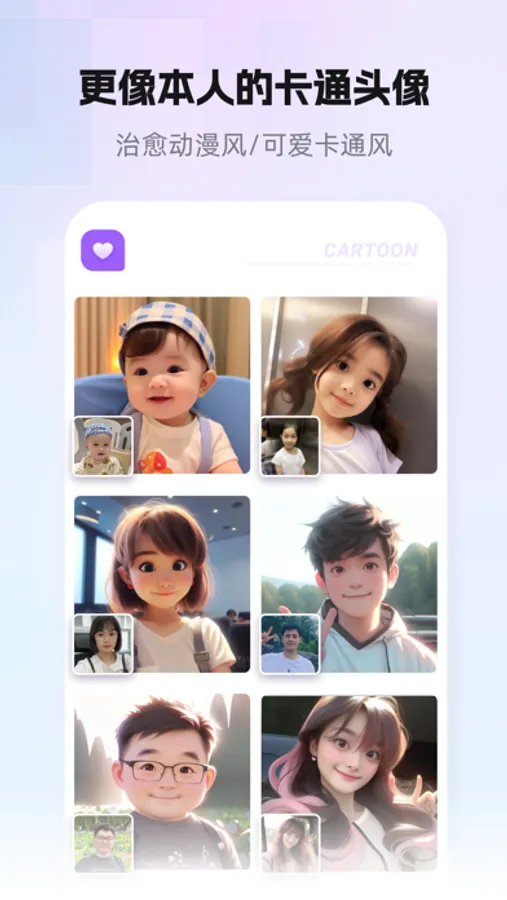 好奇carton漫画世界里的你是什么样子的?一键秒变3D漫画效果,照片变漫画!小漫头像根据你上传的原照片制作,真实逼真,AI一键秒变Q版卡通动漫头像,更像本人,各种头像大全、女生头像、男生头像、闺蜜头像、情侣头像、宝宝头像等微信头像制作,快速生成,让你看到漫画的自己,超流行风格头像设计,生动个性又浪漫。