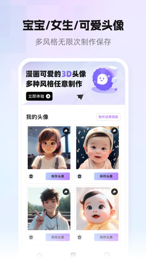多种绝美风格头像制作,AI绘画制作漫画头像,真人漫画版,人物漫画头像生成,动画头像图片直接保存,想让你的头像与众不同,就来小漫头像制作生成,漫画特效美爆,让你见识动漫效果的魔法,还可以无限次制作,你的专属头像馆,赞爆朋友圈的微信头像就是你~