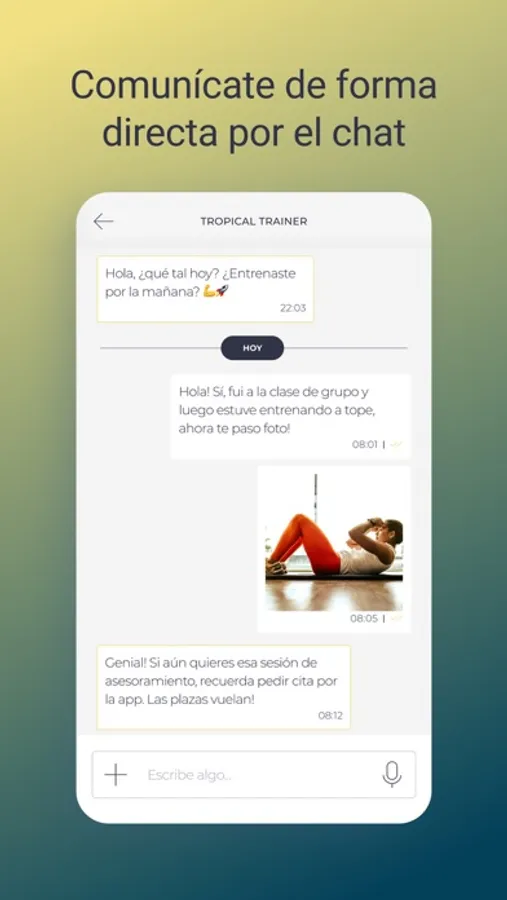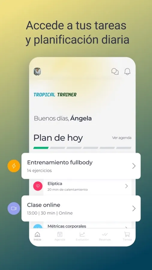 Aquí vas a encontrar una interfaz intuitiva y atractiva para hacerte sentir cómo en casa mientras exploras todas las funcionalidades. Quiero que disfrutes cada momento de tu entrenamiento, por lo que me he asegurado de ofrecerte una experiencia de usuario fluida y agradable. Además, siempre contarás con el respaldo de un profesional dedicado, listo para brindarte el apoyo y la orientación que necesitas en cualquier momento.