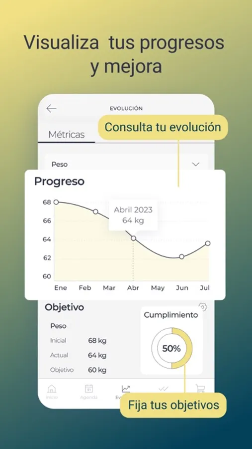 Lo más emocionante es que podrás controlar tu evolución de cerca. Te proporcionaré un seguimiento detallado de tus progresos, celebrando contigo cada victoria y ayudándote a superar cualquier obstáculo que encuentres en el camino. Mi función de seguimiento y registro te permitirá ver cómo mejora tu fuerza, resistencia y flexibilidad a medida que avanzas.