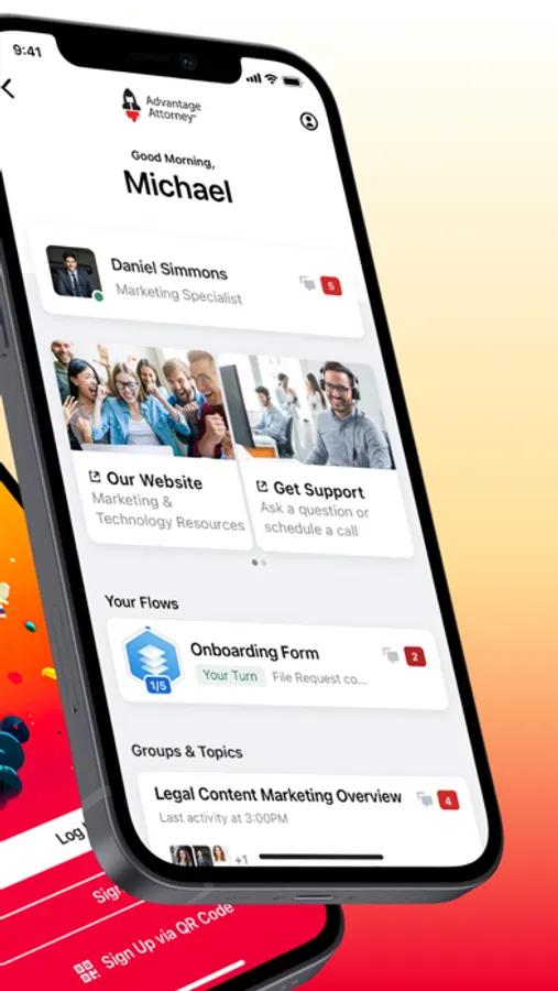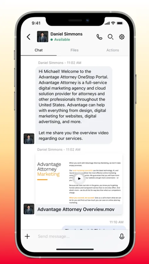 The Advantage Attorney Hub enables attorneys to take full advantage of digital marketing and cloud-based solutions. Our app provides workspaces with messaging, video meetings, document sharing, digital signatures and more - Attorneys can get in touch with our team, track campaigns, view progress of custom landing pages, and stay updated on content creation. The Advantage Attorney Hub makes onboarding, tracking development, and submitting support requests a convenient and seamless experience.