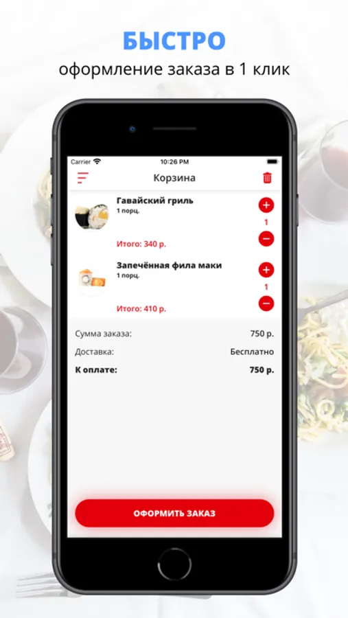 Скачивайте наше приложение, оформляйте заказ и наслаждайтесь любимой едой, где бы Вы ни были! Приятного аппетита!